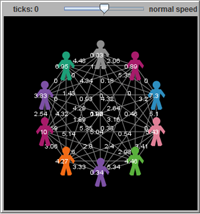 I developed this simulation with NetLogo to simulate team-based learning. The project was led by Dr. Tristan Johnson at the Learning Systems Institutes. Agent Based Modeling (ABM) is a simulation modeling technique that uses a collection of autonomous decision-making entities called agents to model a system (Bonabeau, 2002). This computational method enables a researcher to create, analyze, and experiment with models composed of agents that interact within an environment (Gilbert, 2008). According to Bonabeau (2002) the benefits of ABM over other modeling techniques are: (a) ABM captures emergent phenomena (i.e., phenomena that results from the interactions of individual entities); (b) ABM provides a natural description of a system (e.g., modeling a traffic jam); and (c) ABM is flexible (e.g., it is easy to add more agents, change rules and behaviors, and so on.). Unlike traditional scientific approaches which are inductive in nature (i.e., discover patterns in empirical data), in ABM a set of rules is defined and the emergent phenomena is captures from the bottom up when the simulation is run (Axelrod, 1997; Bonabeau, 2002). ABM has been applied to various domains including consumer behavior, flow management, and distributed computing (e.g., Bonabeau, 2002; Gimblett, 2002; Jonassen & Jager, 1999).