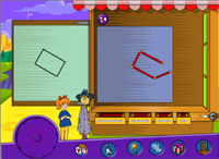 The Geometry Buds software (available only on CD format) was created at the Center for Educational Technology (CET). My roles were the leading programmer as well as content design and characterization. In this software, the children (ages 6-9) engage in active schema construction of geometry concepts. For example, in the sticks stand (see left picture below), the child uses the sticks drawers to select the right sticks and then uses them to build the shape that appears on the left. In the Balloons room (see middle picture below), the child needs to build the shape that appears on the basket with the shapes that appear on the balloon (like Tangram). In the dark rooms (see right picture below), the child needs to select the shape that is "hiding" behind the doors.